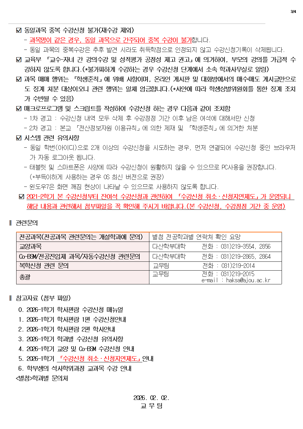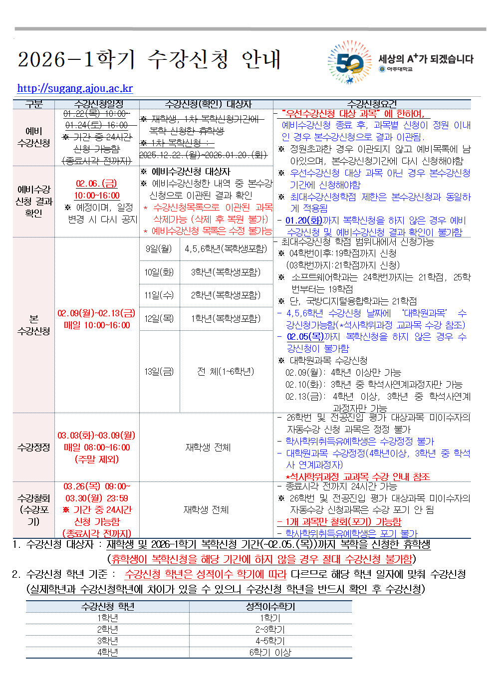 [학사] [학부] 2026-1학기 수강신청 안내 (02.09(월)~02.13(금))