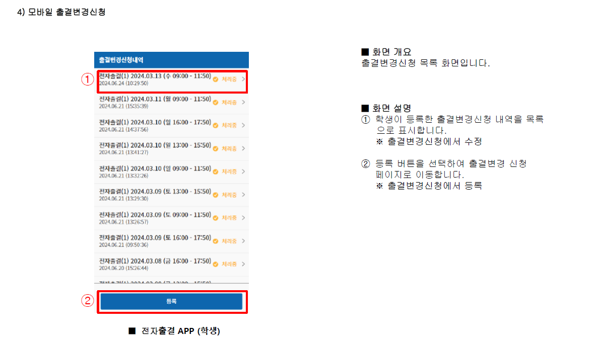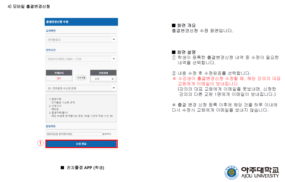 [학사] [출결] 전자출결 오류사항 처리방법 안내 (출결변경신청)*