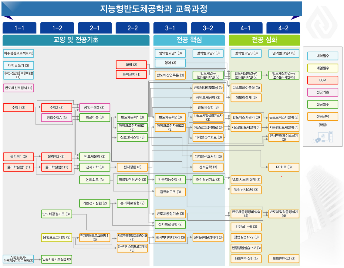 | 시스템반도체설계 | 4 | 5 | 아날로그집적회로,디지털 집적 회로 | 지능형반도체설계 | 4 | 5 | 시스템반도체설계 | ||||