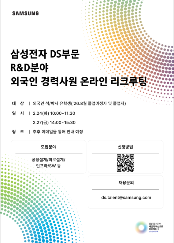 [취업] 삼성전자 DS부문 R&D분야 외국인 경력사원 온라인 리쿠르팅