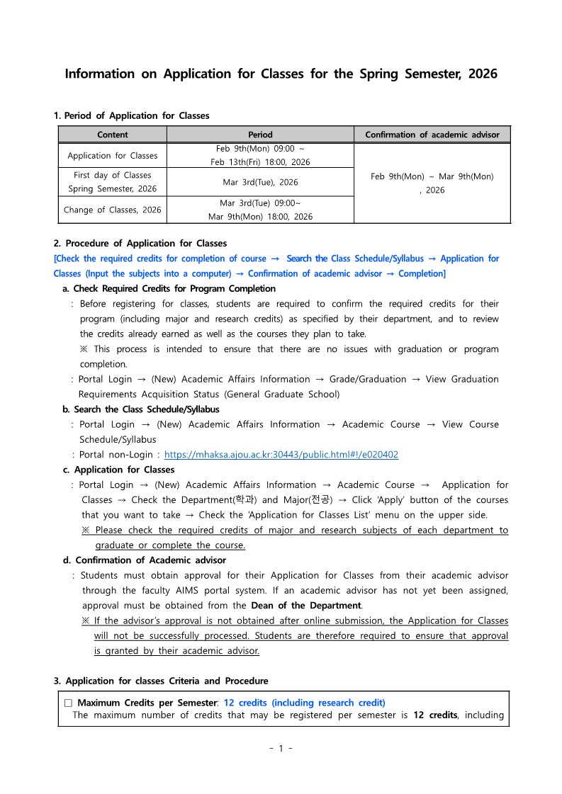 Application for Classes, Spring 2026
