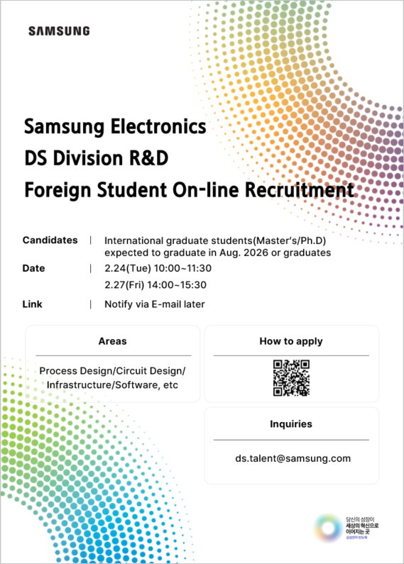 [Recruit] Samsung Electronics DS Division R&D Foreign Student On-line Recruitment