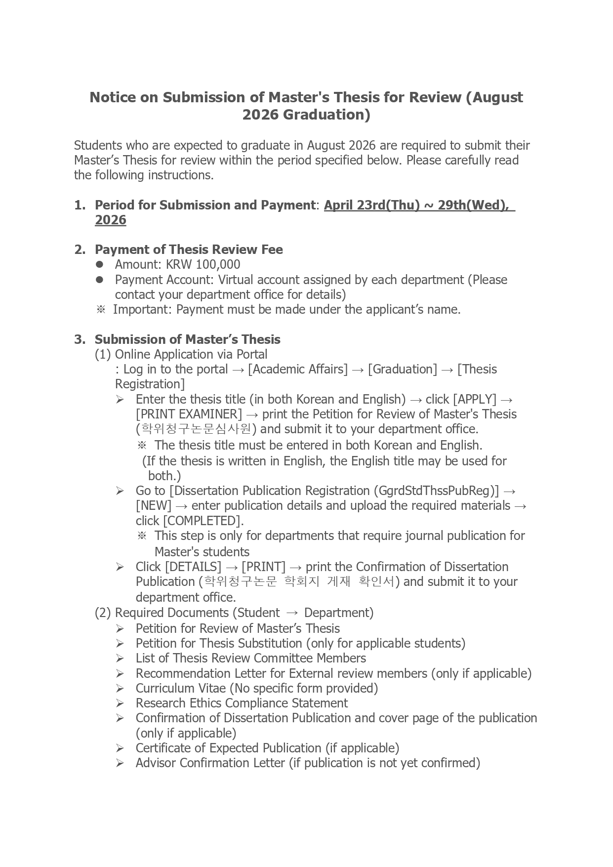 Notice on Submission of Master's Dissertation for Review (August 2026 Graduation)