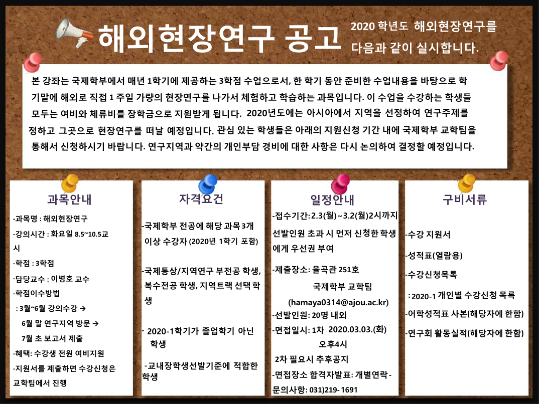 | 9634 | 비교과 | 국제대학원교학팀 | 2020-01-23 | ||
