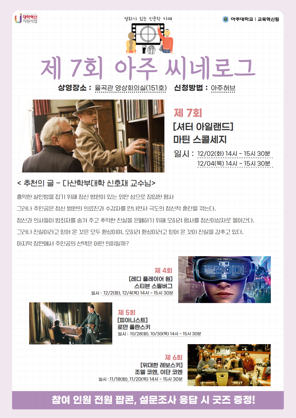 [๋น„๊ต๊ณผ] ๐ŸŽ[์‹ ์ฒญ๊ฐ€๋Šฅ-2025 ์ฐ๋ง‰ D-0]์˜ํ™”๊ฐ€ ์žˆ๋Š” ์ธ๋ฌธํ•™ ์นดํŽ˜ '์•„์ฃผ ์”จ๋„ค๋กœ๊ทธ' ์ฐธ์—ฌ์ž ๋ชจ์ง‘๐ŸŽ