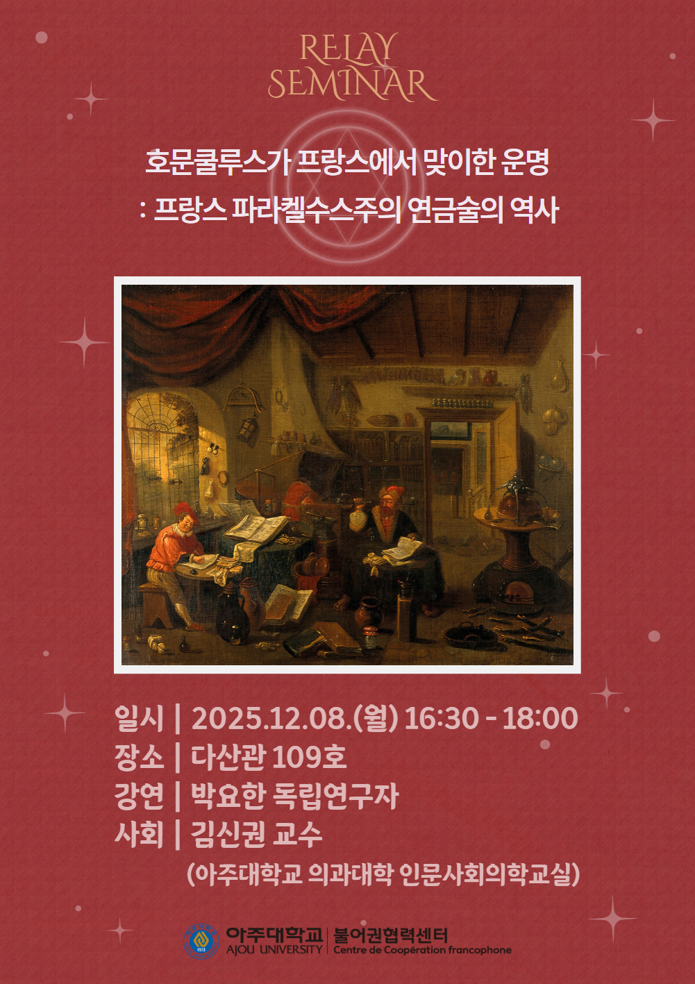 2025-2학기 불어권협력센터 릴레이 세미나 제 3차 세미나 <호문쿨루스가 프랑스에서 맞이한 운명: 프랑스 파라켈수스주의 연금술의 역사> 안내