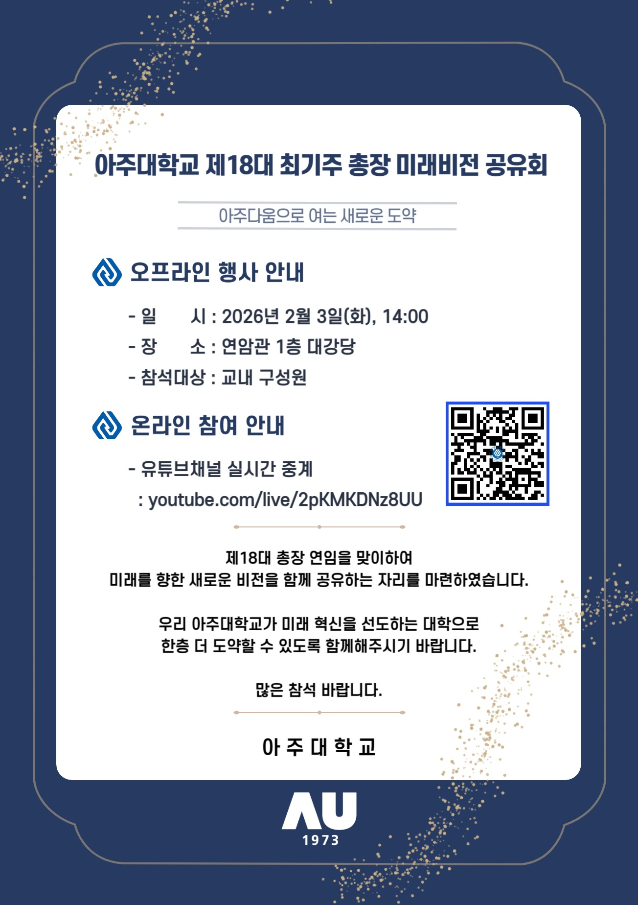 [행사] (당일재안내) 제18대 최기주 총장 미래비전 공유회 개최 및 참석 안내