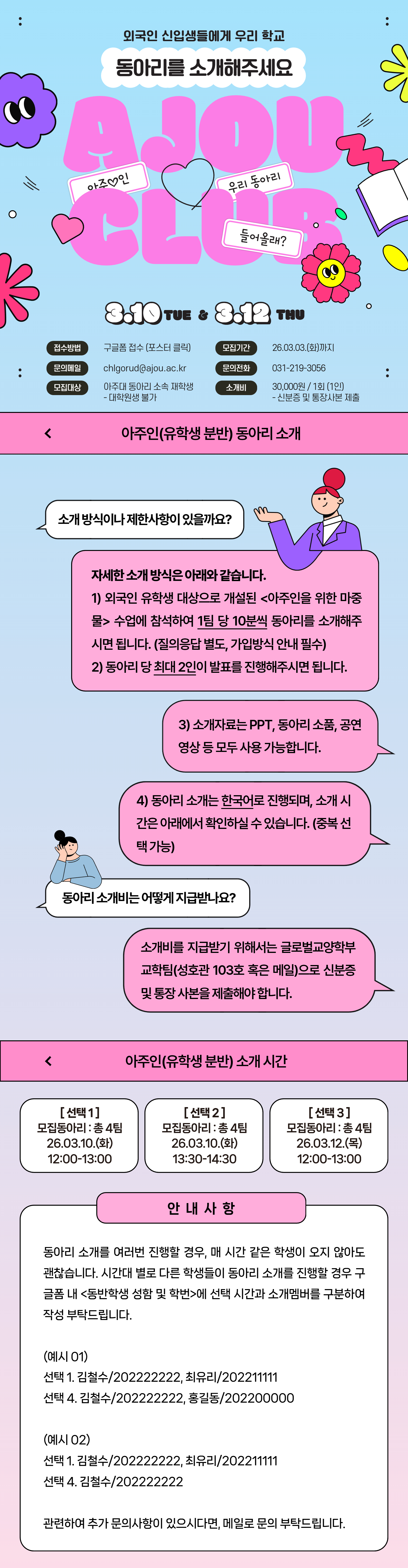 [비교과] [글로벌교양학부] 26.1학기 <아주인을 위한 마중물> 동아리 소개 모집 (추가 모집)