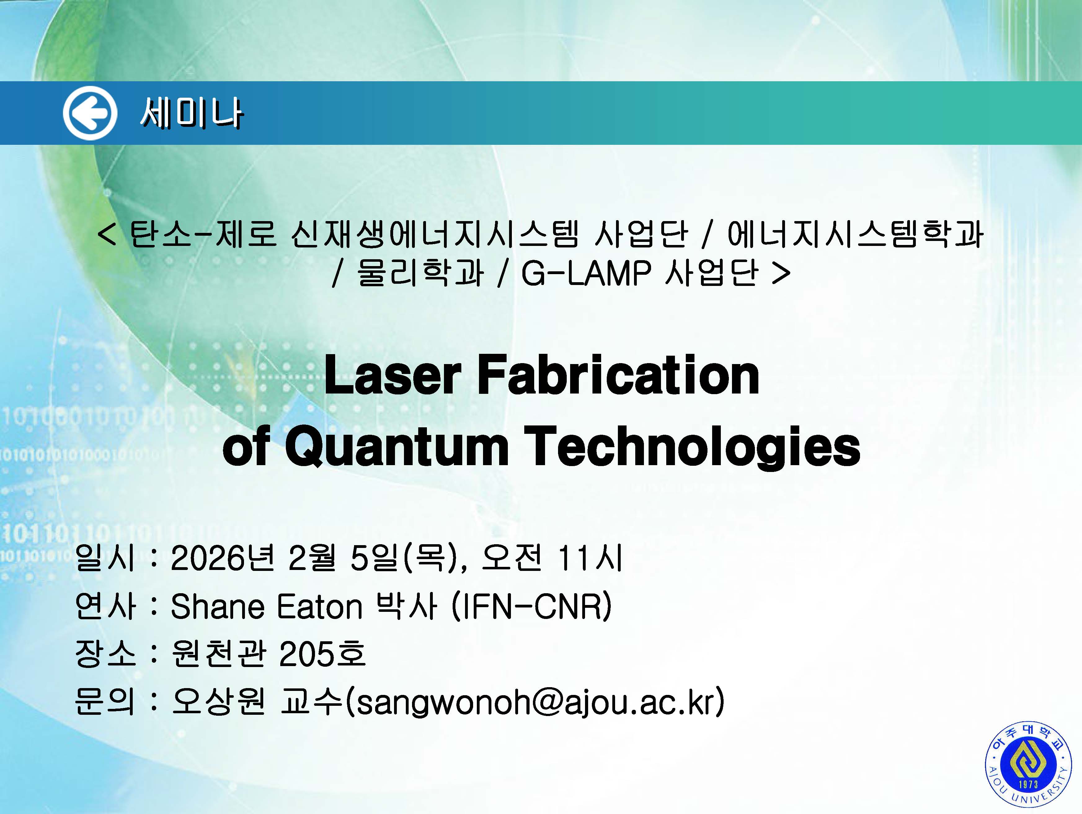 [2026.01.14.수] 탄소-제로 신재생에너지시스템 사업단 / 에너지시스템학과 / 화학공학과 / 해외우수과학자유치사업 / G-LAMP 사업단 / 차세대에너지과학연구소